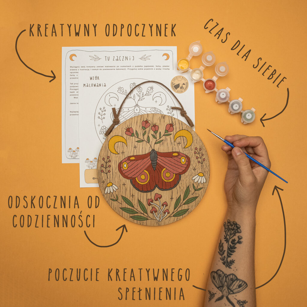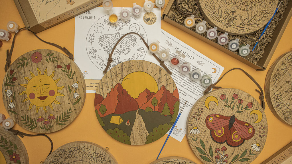 Elementor #19 STWÓRZ SWOJE MAŁE DZIEŁO SZTUKI i poczuj się jak artystka. Nie potrzebujesz zdolności plastycznych aby stworzyć coś pięknego.Pozwól sobie na kreatywny czas z naszym zestawem do malowania. Znam szczegóły, wskakuję do sklepu CO OTRZYMASZ W ZESTAWIE: ZESTAW JEST DLA CIEBIE JEŚLI: pragniesz stworzyć coś własnymi rękoma chcesz wyżyć się kreatywnie, ale nie masz czasu na naukę malowania czy rysowania może nie czujesz się na siłach aby malować obrazy od zera kochasz naturę i podobają Ci się drewniane dekoracje chcesz stworzyć piękną ozdobę albo podarować komuś kreatywny prezent Wskakuję do sklepu